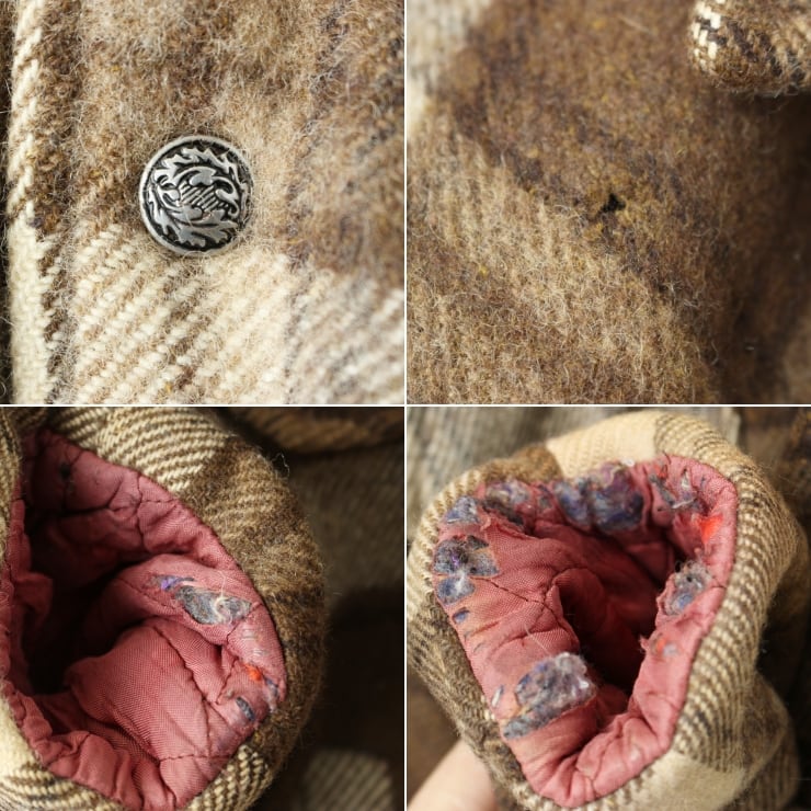 ボディは程よい厚みのあるウール生地、ブラウンのチェック柄。
