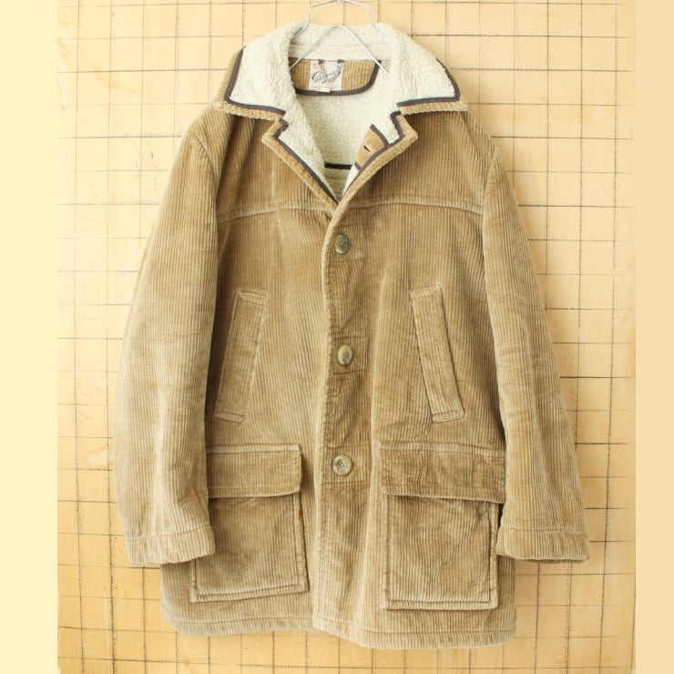 70s 80s ENGLAND製 Gloverall ボアライナー太畝コーデュロイコート メンズL相当 ベージュ ユーロ ヨーロッパ古着 092425aw134