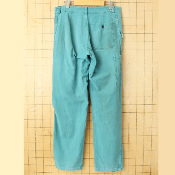 60s 70s フランス コットンツイル ワークペインターパンツ W33相当 グリーン ユーロ ヨーロッパ古着 082725aw71