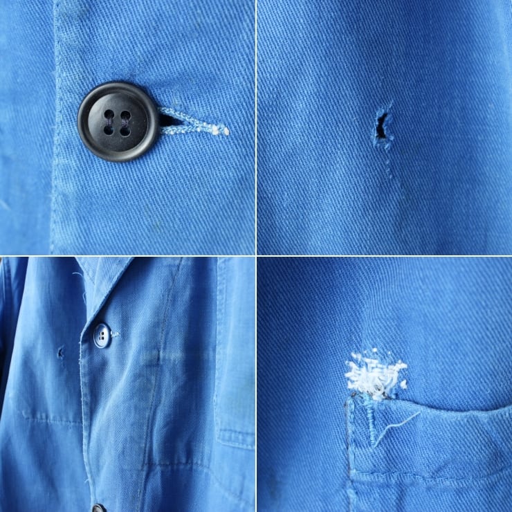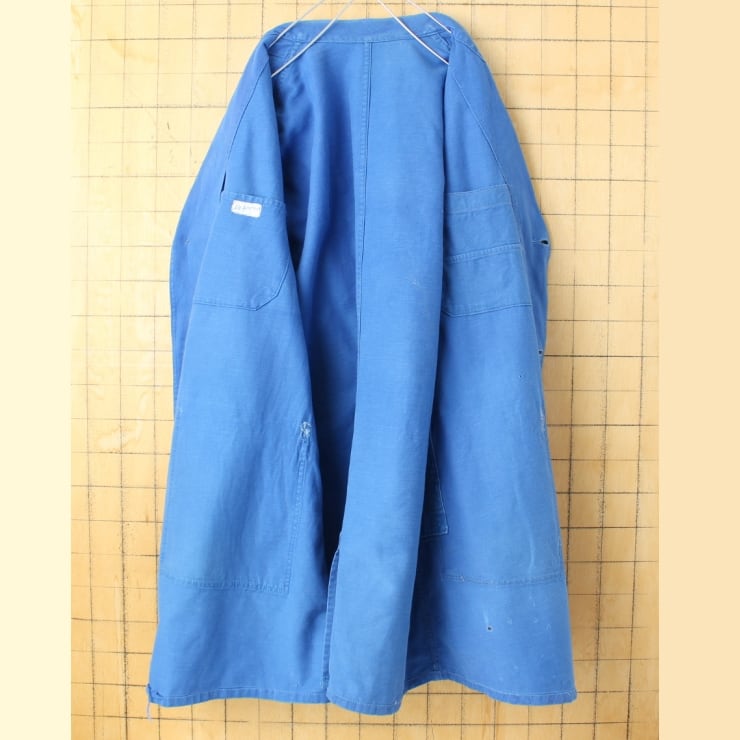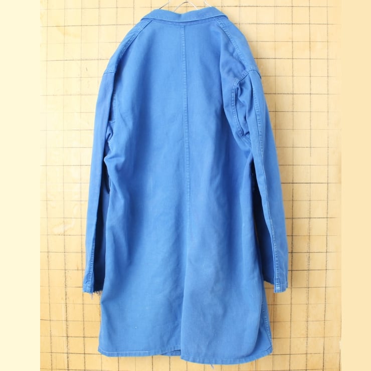 70s 80s フランス La Seore ダメージワークコート メンズL相当 ブルー ユーロ ヨーロッパ古着 082725aw69