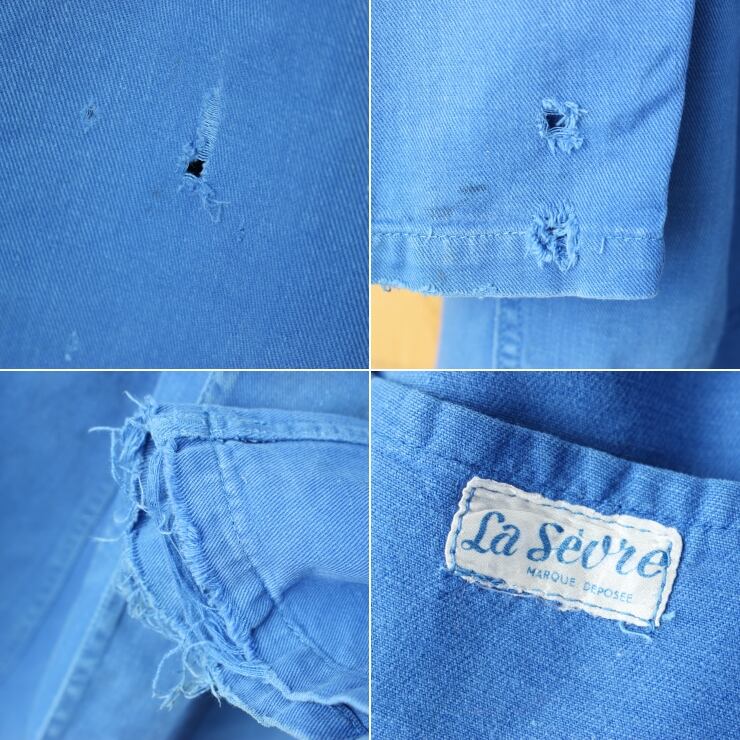 70s 80s フランス La Seore ダメージワークコート メンズL相当 ブルー ユーロ ヨーロッパ古着です。