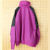 80s 90s Columbia Powder Keg ジップアップナイロンジャケット パープル ブラック レディースL アウトドア アメリカ古着です。