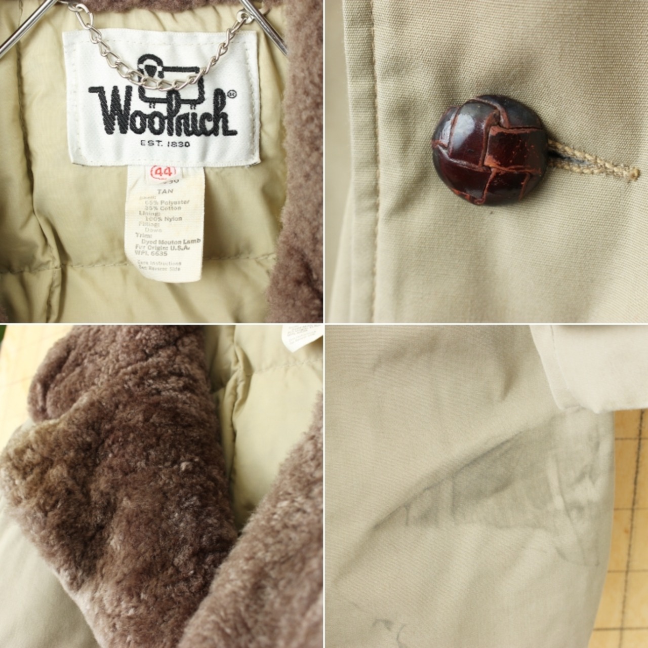 70s 80s USA製 Woolrich ウールリッチ ムートンボア ダウンコート ベージュ メンズXL相当 アメリカ古着です。