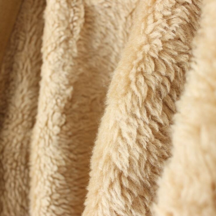 ボディはしっかりと厚みのあるウール生地、裏地はふんわりと柔らかいボアライナー。