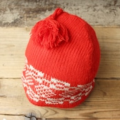 70s 80s EURO ウールニットキャップ レッド ポンポン ユーロ ヨーロッパ古着です。