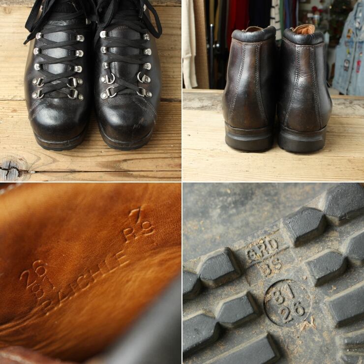 70s 80s スイス Raichle レザートレッキングブーツ 25.5cm相当 ブラック アメリカ古着 092425aw161