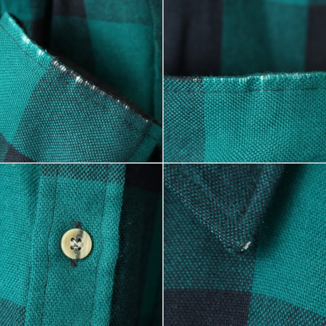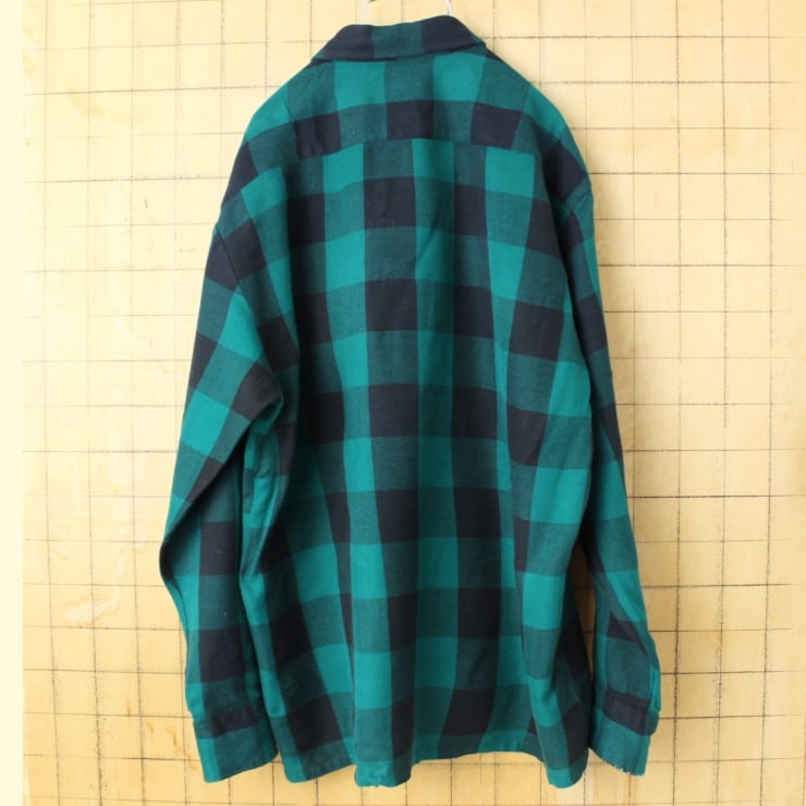80s 90s USA ブロックチェックアクリルシャツ グリーン ブラック メンズL相当 長袖 ボックスシルエット アウトドア アメリカ古着 011426aw36