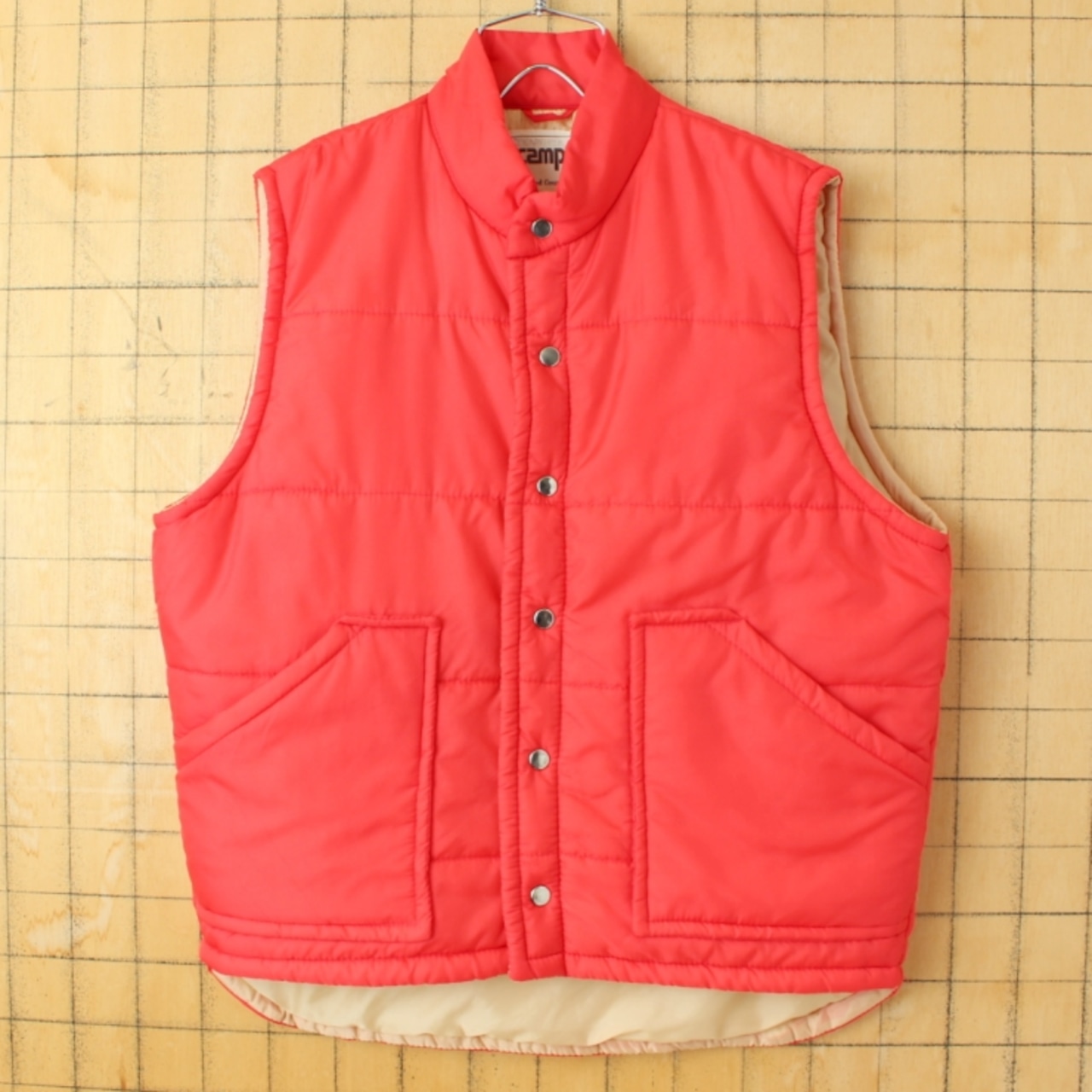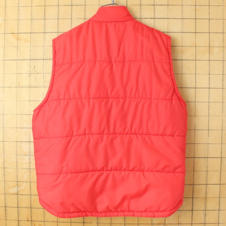 80s USA campus ナイロン中綿ベスト メンズM レッド アウトドア キャンプ アメリカ古着 011426aw70