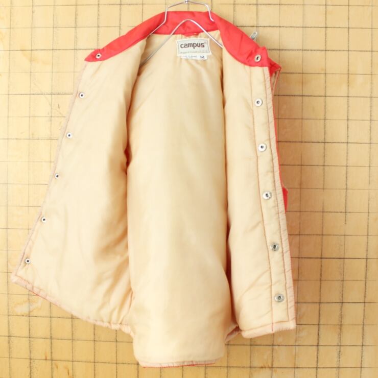 80s USA campus ナイロン中綿ベスト メンズM レッド アウトドア キャンプ アメリカ古着です。