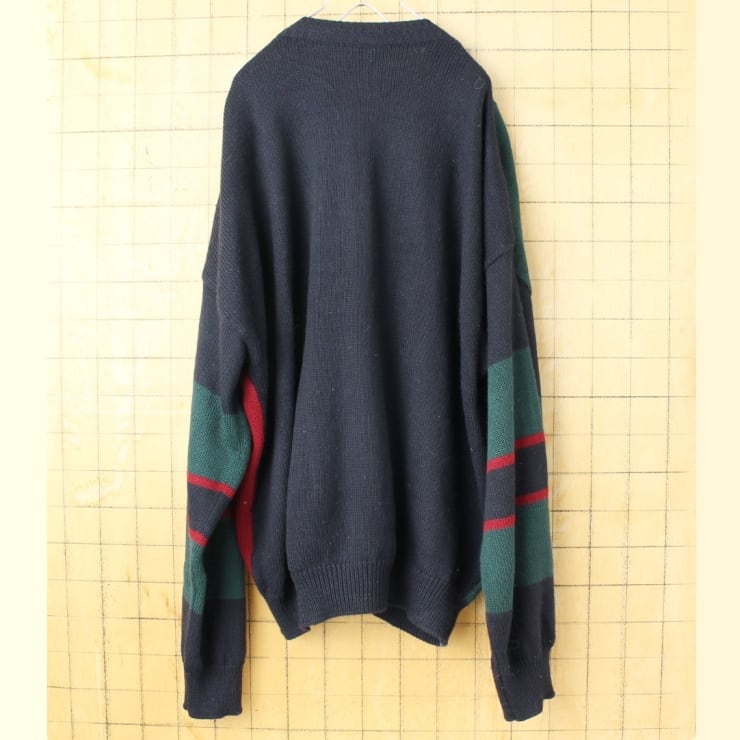 90s オーストラリア製 Sovrano australia ウールカーディガン ネイビー メンズXL相当 古着 011426aw75