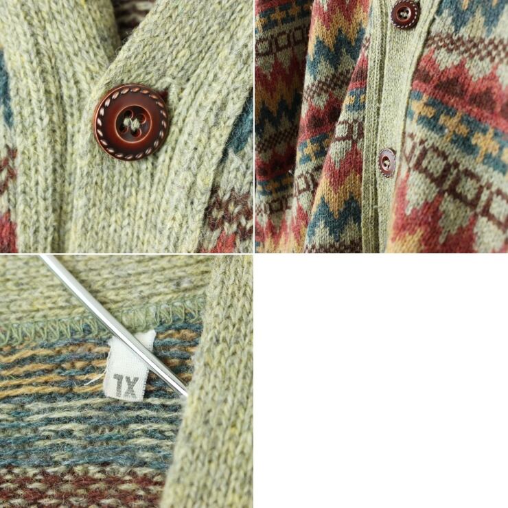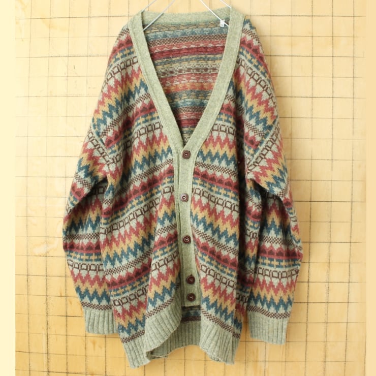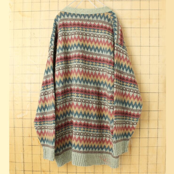 80s 90s USA 総柄ウールニットカーディガン ライトグリーン メンズXL アメリカ古着 011426aw77