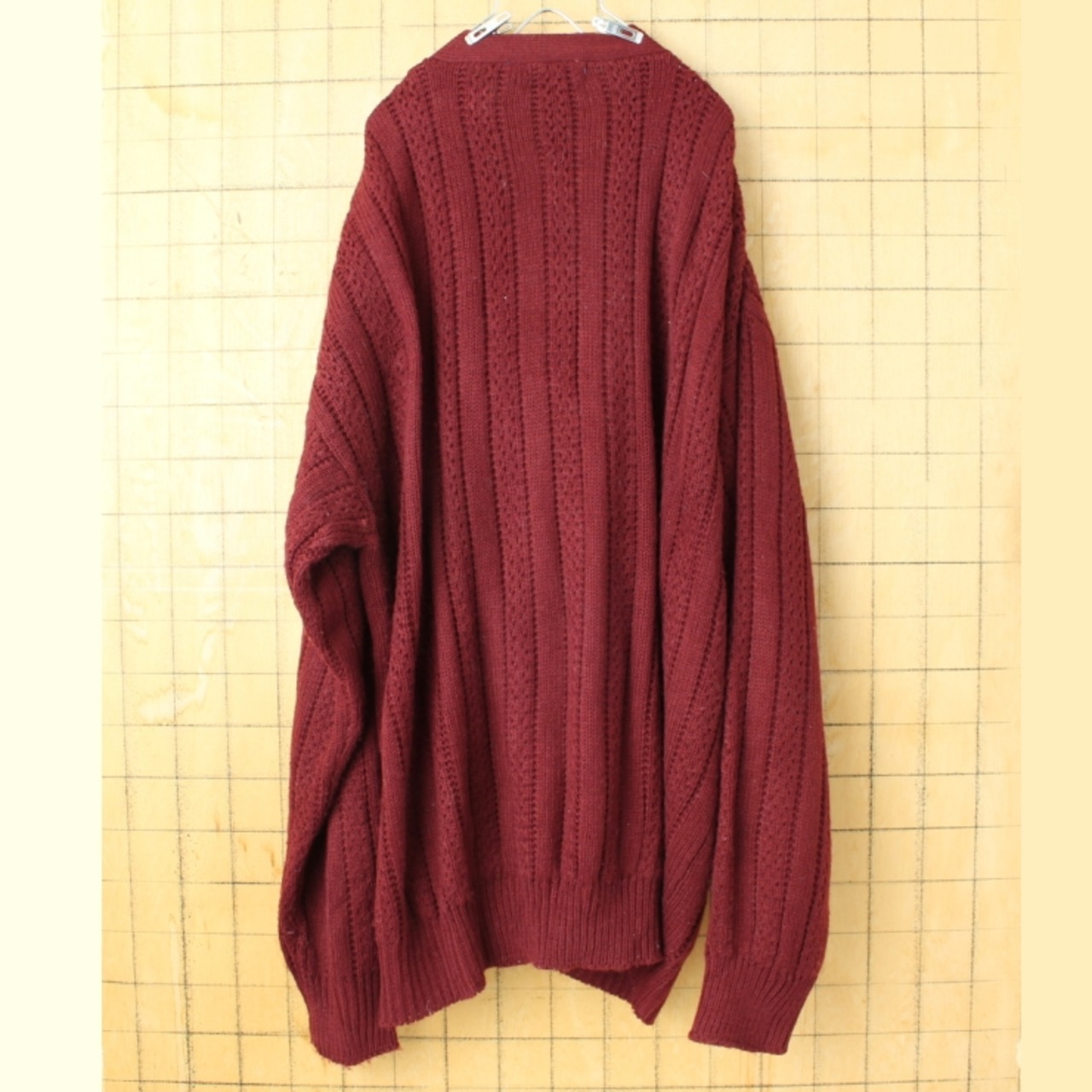 ビッグサイズ 90s USA TOWNCRAFT アクリルニットカーディガン ボルドー メンズXL アメリカ古着 011426aw79