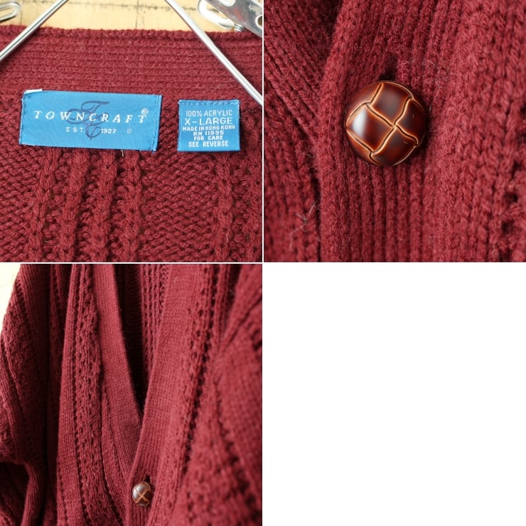 ビッグサイズ 90s USA TOWNCRAFT アクリルニットカーディガン ボルドー メンズXL アメリカ古着です。