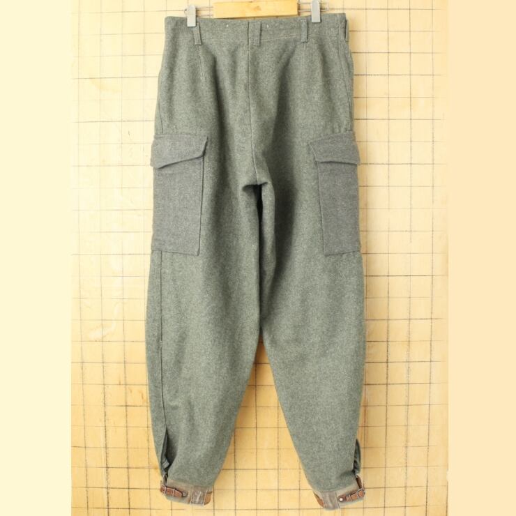 40s スウェーデン軍 M39ウールカーゴパンツ W32相当 レザーベルト 実品 ミリタリー ヨーロッパ古着 011426aw104