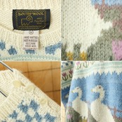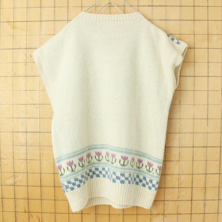 80s 90s ウルグアイ製 SOUTH WOOL ハンドメイド ウールニットベスト レディースM アヒル柄 オフホワイト アメリカ古着 011426aw57