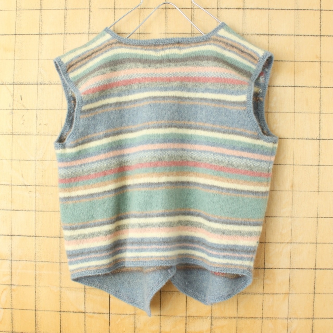 80s 90s USA Woolrich 総柄ウールニットベスト レディースM ブルー アメリカ古着です。