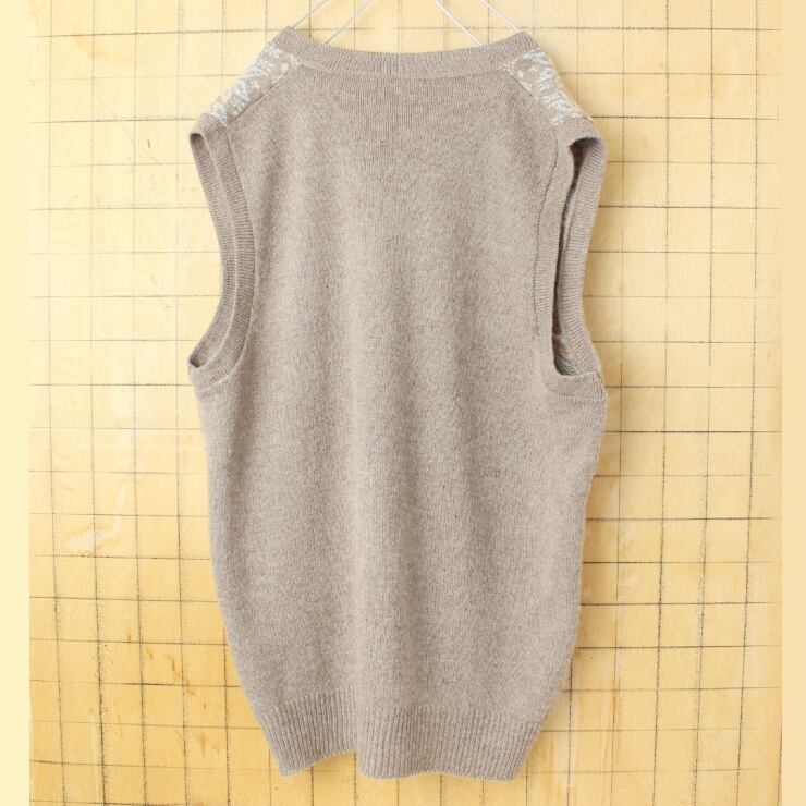 80s 90s USA製 Jantzen 総柄ウールニットベスト メンズXL ベージュ アメリカ古着 011426aw67