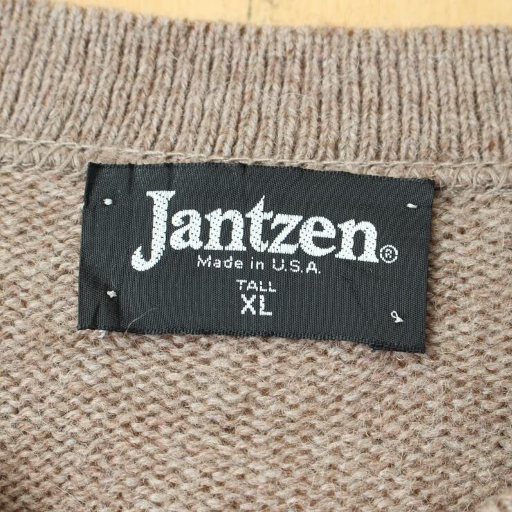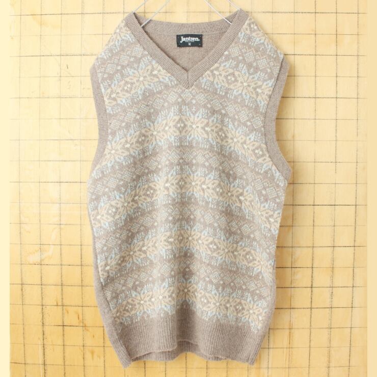 80s 90s USA製 Jantzen 総柄ウールニットベスト メンズXL ベージュ アメリカ古着です。