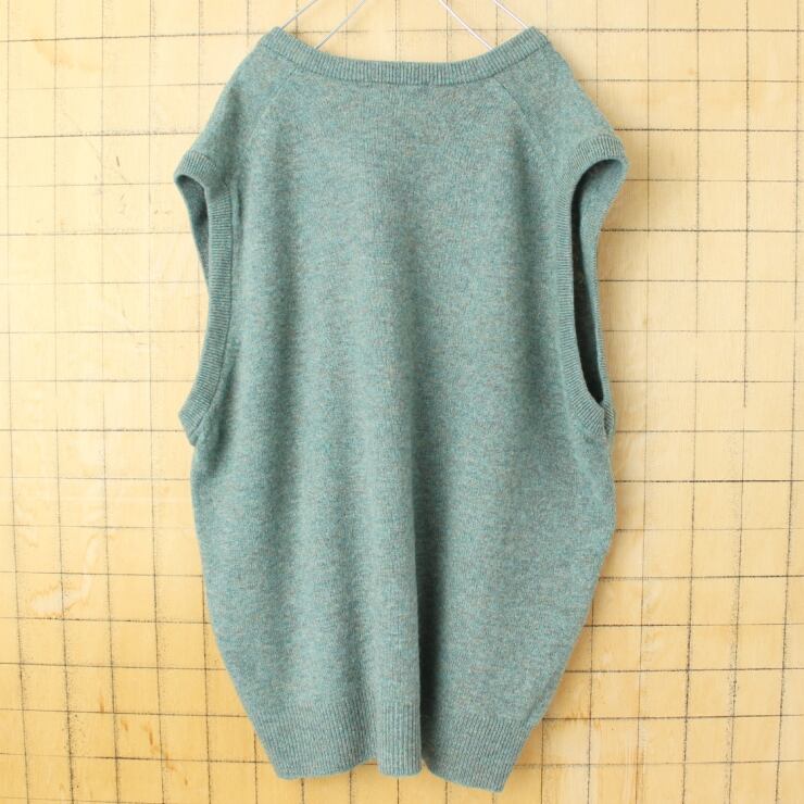 80s 90s スコットランド製 LLBean ラムウールニットベスト メンズL グリーン アメリカ古着 011426aw69