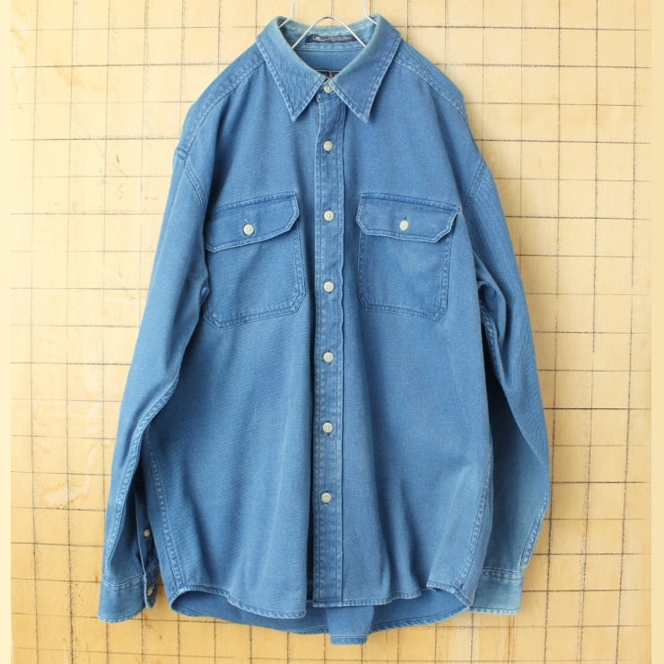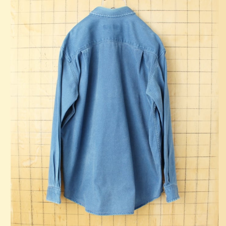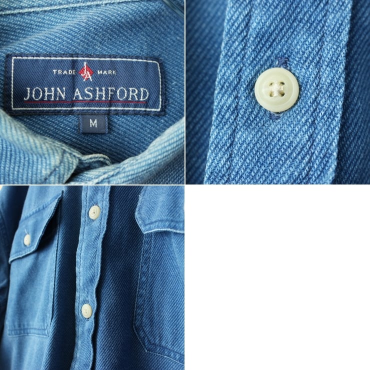 90s 00s USA JOHN ASHFORD コットンシャツ メンズM ブルー アウトドア 長袖 アメリカ古着 011426aw14