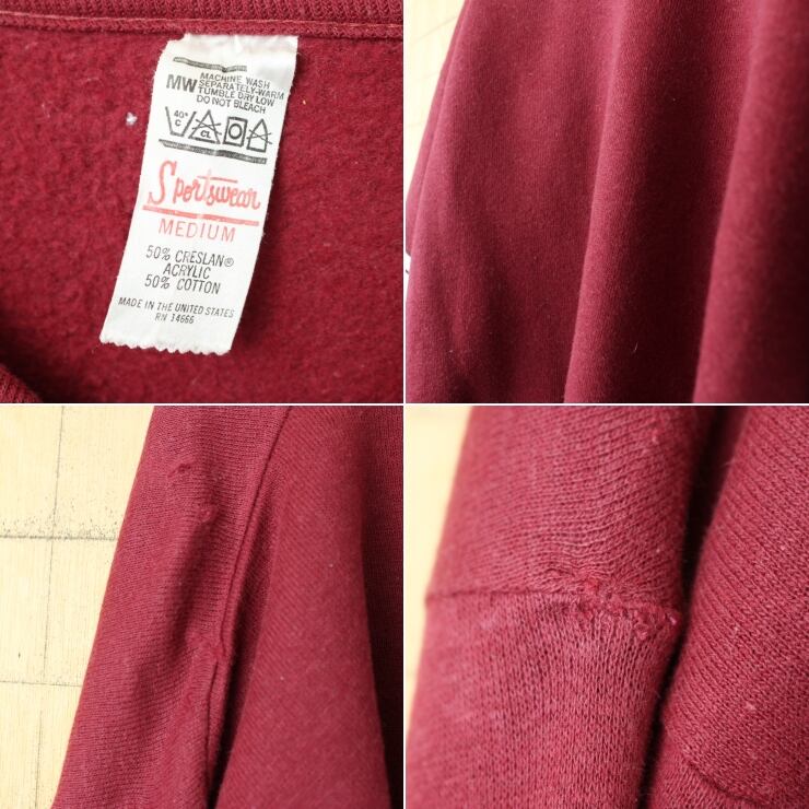 70s USA製 Sportswear Vネック プレーンスウェット ボルドー レッド メンズM 無地 アメリカ古着です。