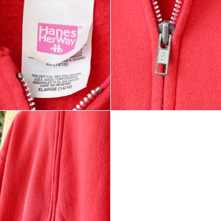 90s USA Hanes HerWay ヘインズ ジップアップスウェットパーカー ピンク レディースM相当 アメリカ古着 011426aw134