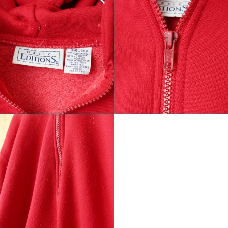 90s USA basic EDITIONS ジップアップスウェットパーカー レッド メンズS フーディー 無地 アメリカ古着 swp-28