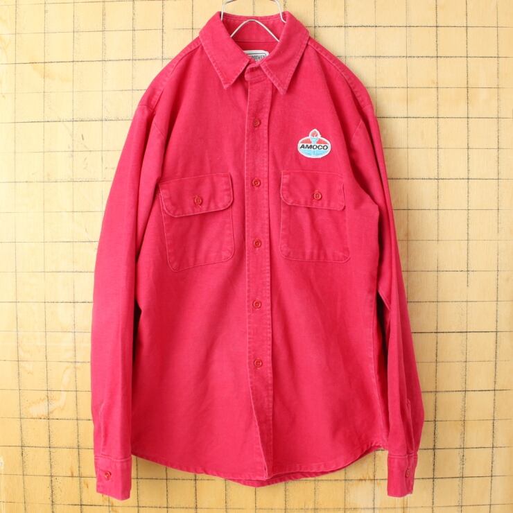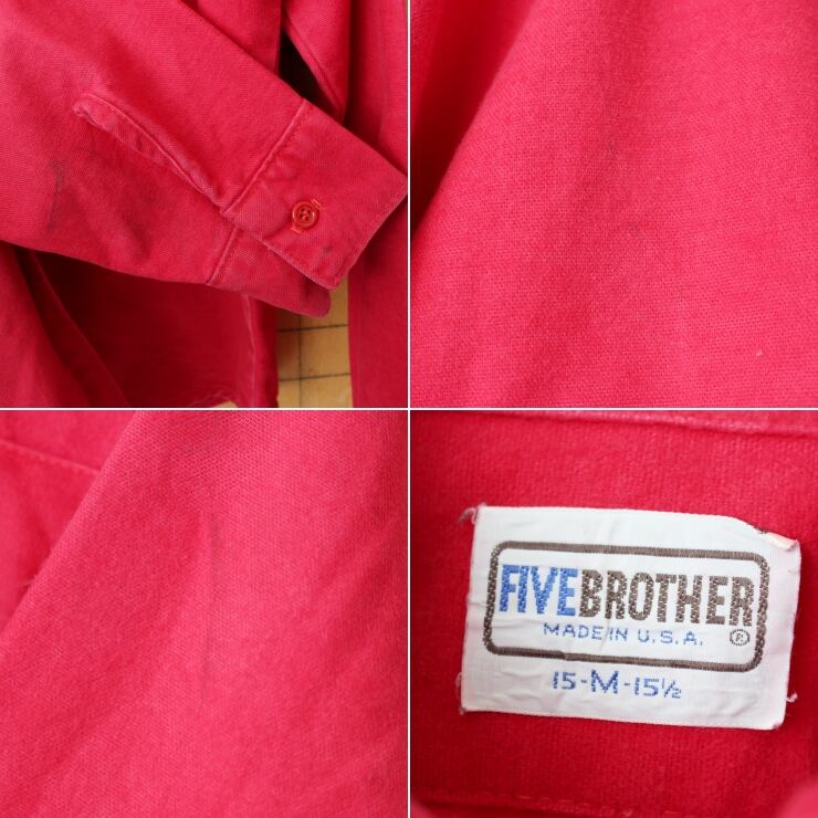 80s 90s USA製 FIVE BROTHER コットン シャモアクロスワークシャツ メンズM アウトドア レッド 長袖 5 アメリカ古着 011426aw22