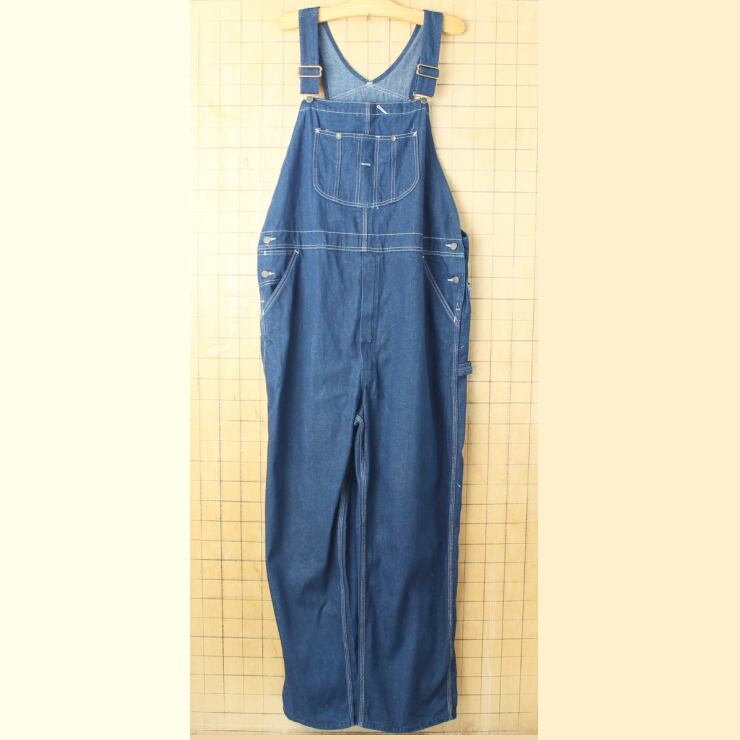 80s 90s USA製 Sears ROEBUCKS デニムオーバーオール W46 ジッパーフライ ブルー アメリカ古着