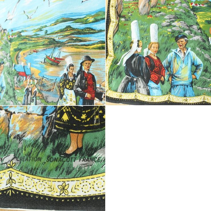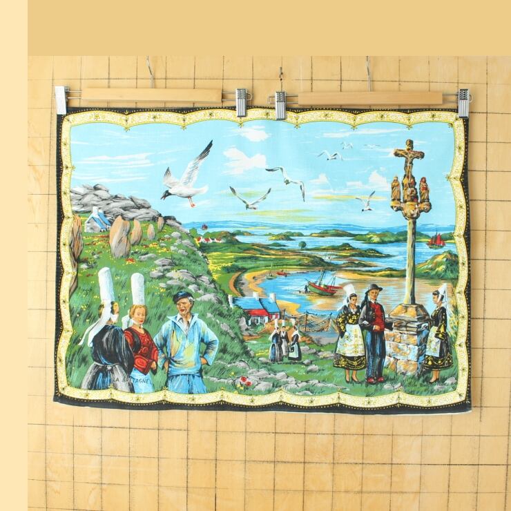 60s 70s フランス ブルターニュ ヴィンテージ プリントティータオル タペストリー ファブリック ヨーロッパ古着です。