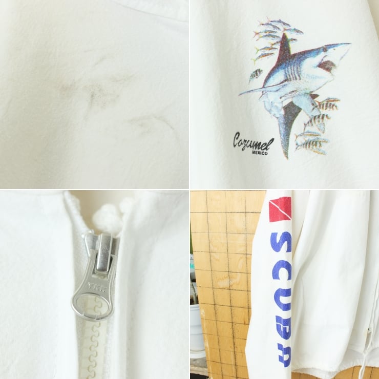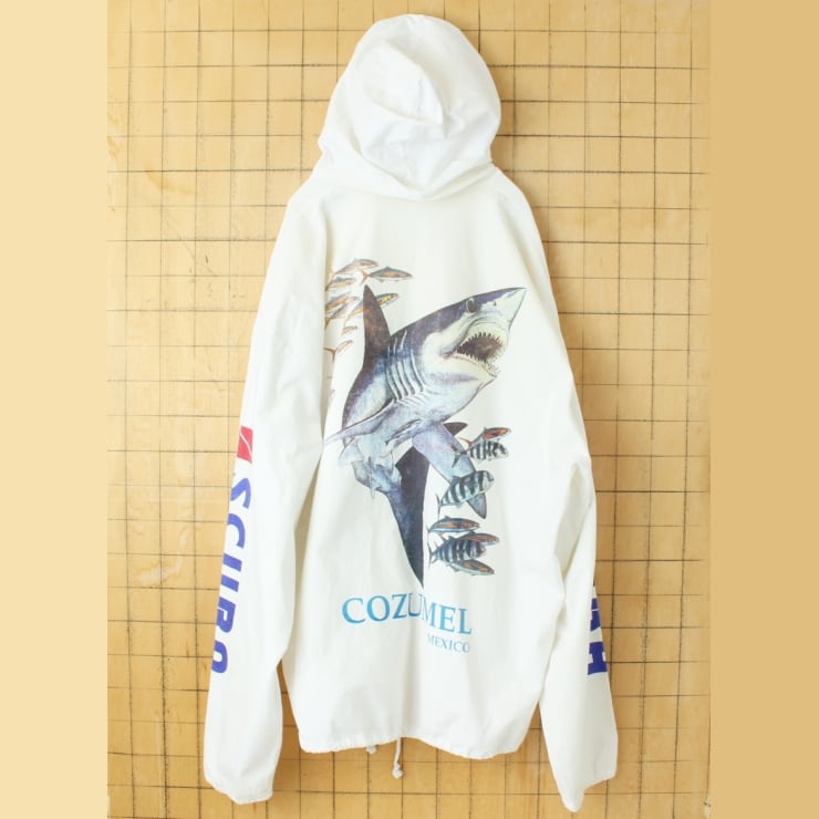 90s 00s COZUMEL MEXICO サメプリント フルジップパーカージャケット メンズXL相当 ホワイト アメリカ古着 061125ss56