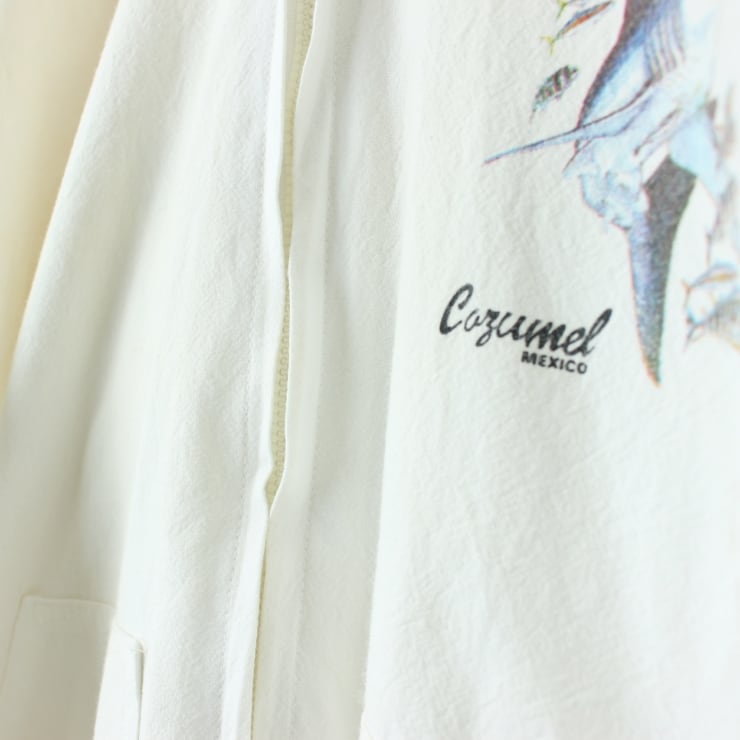 90s 00s COZUMEL MEXICO サメプリント フルジップパーカージャケット メンズXL相当 ホワイト アメリカ古着です。