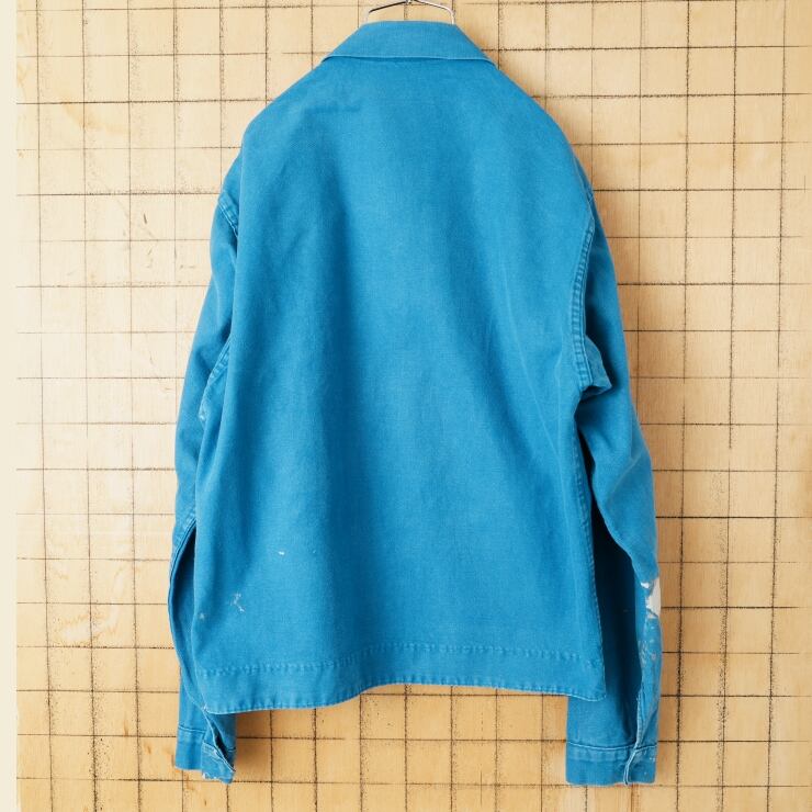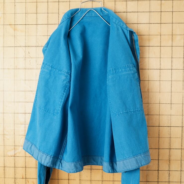 70s 80s EURO CHAGNAUD ジップアップ コットンツイルワークジャケット カバーオール メンズL相当 ブルー ユーロ ヨーロッパ古着 011426aw2