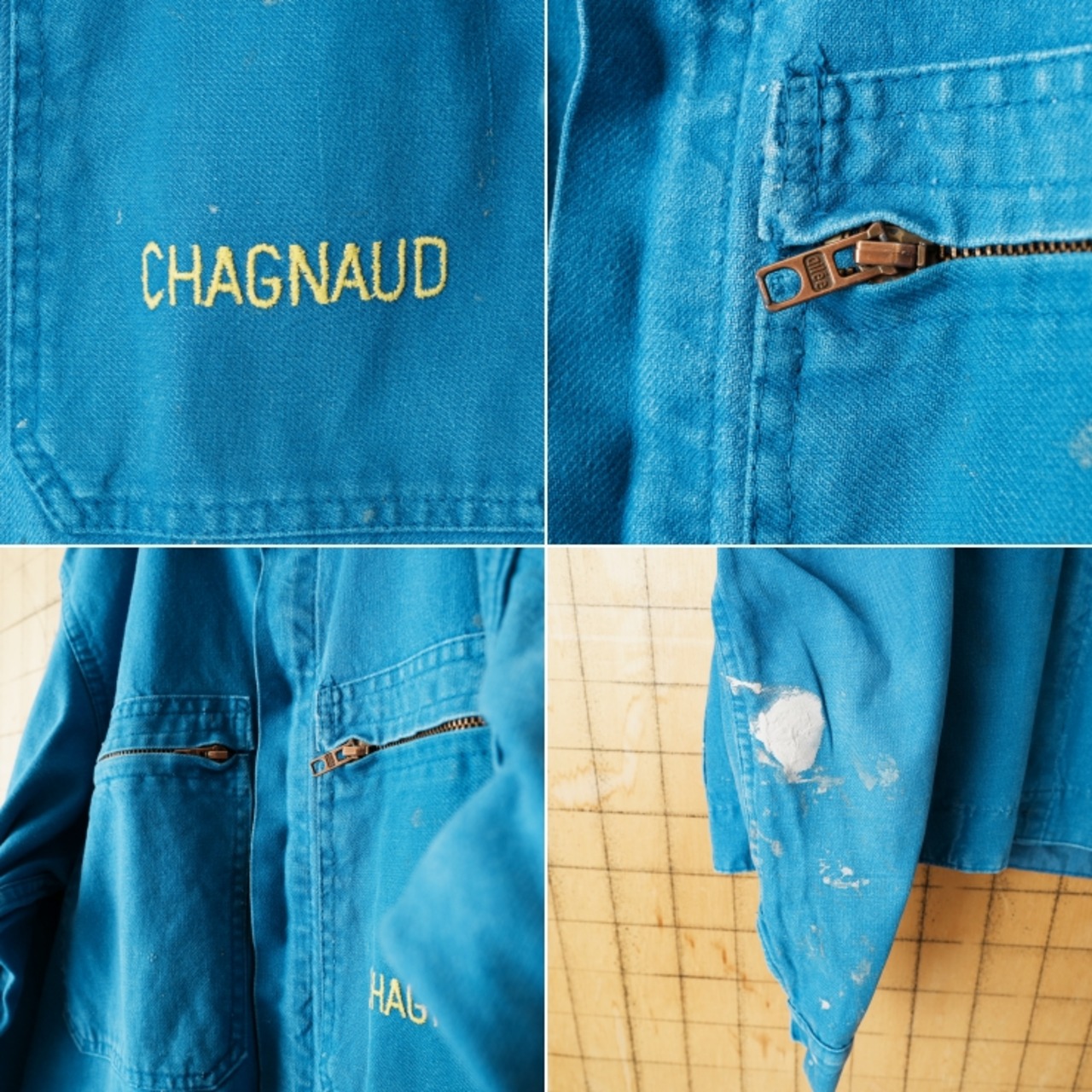 70s 80s EURO CHAGNAUD ジップアップ コットンツイルワークジャケット カバーオール メンズL相当 ブルー ユーロ ヨーロッパ古着です。