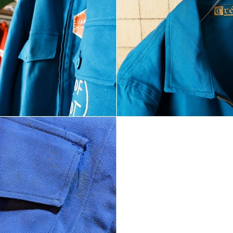 詳細画像にてご確認ください。っっっっっっっっmデッドストック 70s 80s EURO Crepier EDF CDT ジップアップ コットンツイルワークジャケット カバーオール メンズL相当 ブルー ユーロ ヨーロッパ古着です。