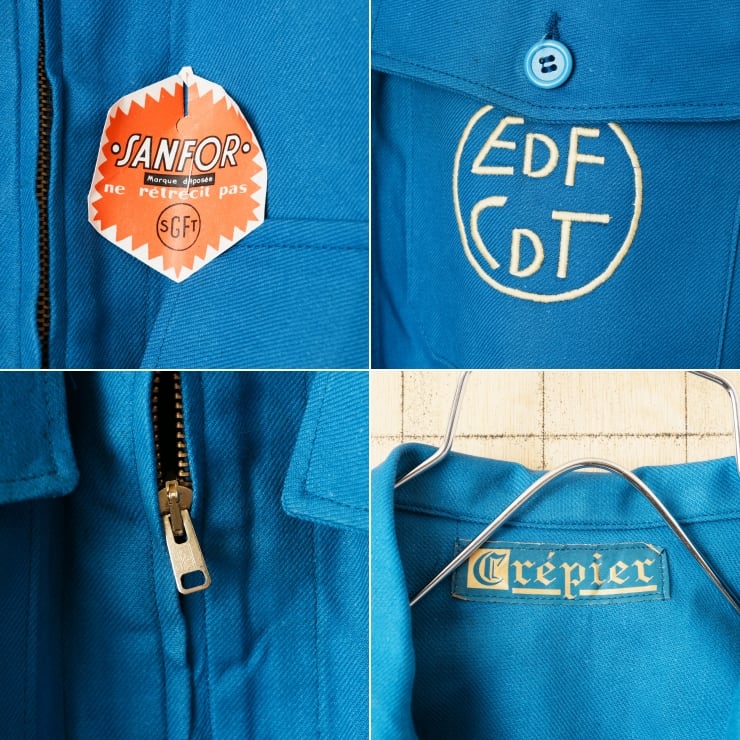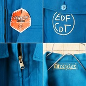 デッドストック 70s 80s EURO Crepier EDF CDT ジップアップ コットンツイルワークジャケット カバーオール メンズL相当 ブルー ユーロ ヨーロッパ古着です。