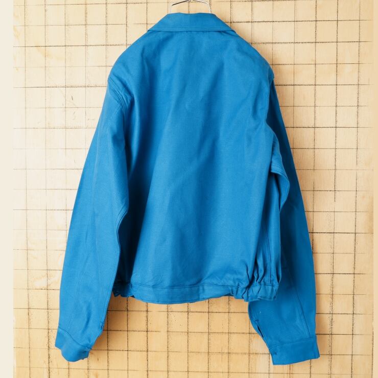 デッドストック 70s 80s EURO Crepier EDF CDT ジップアップ コットンツイルワークジャケット カバーオール メンズL相当 ブルー ユーロ ヨーロッパ古着 011426aw3