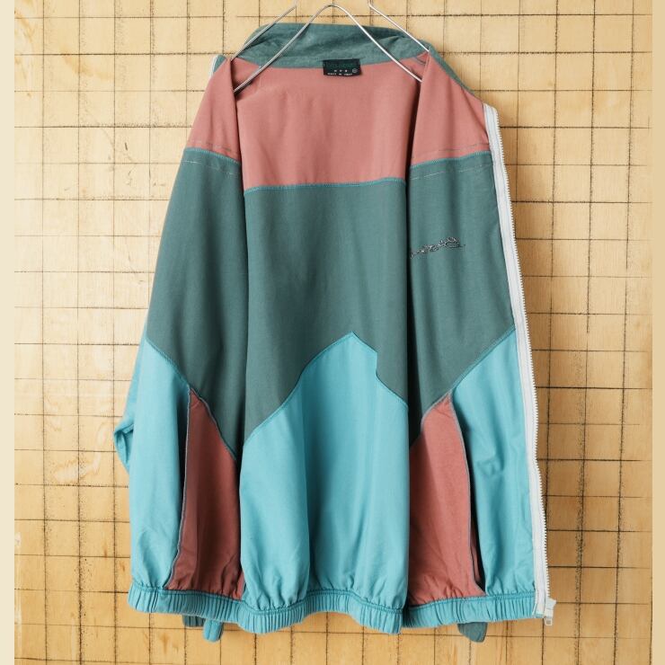 90s 00s イタリア製 Blu Stone ベロアトラックジャケット ジップアップジャージ ブルー ピンク メンズXL ヨーロッパ古着 011426aw53
