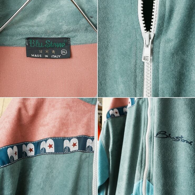 90s 00s イタリア製 Blu Stone ベロアトラックジャケット ジップアップジャージ ブルー ピンク メンズXL ヨーロッパ古着です。
