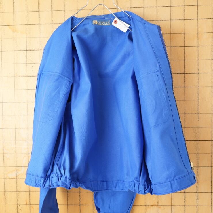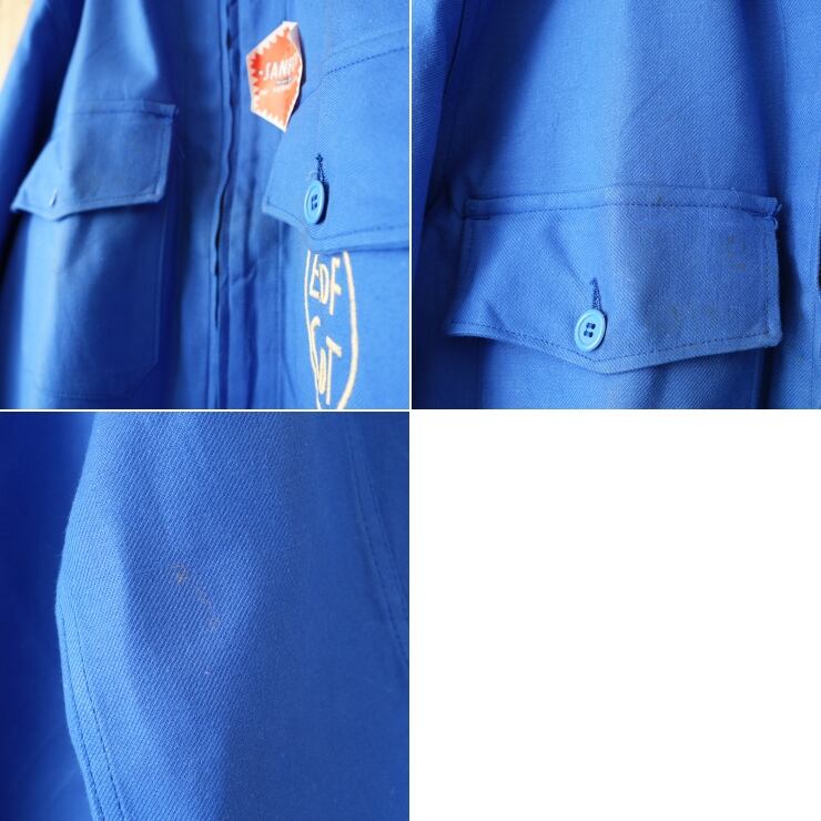 デッドストック 70s 80s EURO Crepier EDF CDT ジップアップ コットンツイルワークジャケット カバーオール メンズL相当 ブルー ユーロ ヨーロッパ古着です。