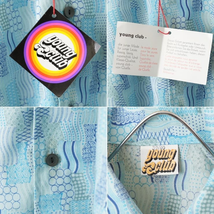 デッドストック 70s 80s EURO young club 総柄ライトフランネルシャツ ブルー メンズML相当 長袖 ヨーロッパ古着です。
