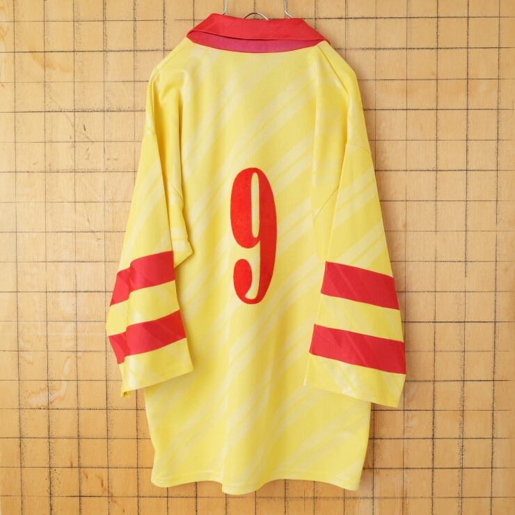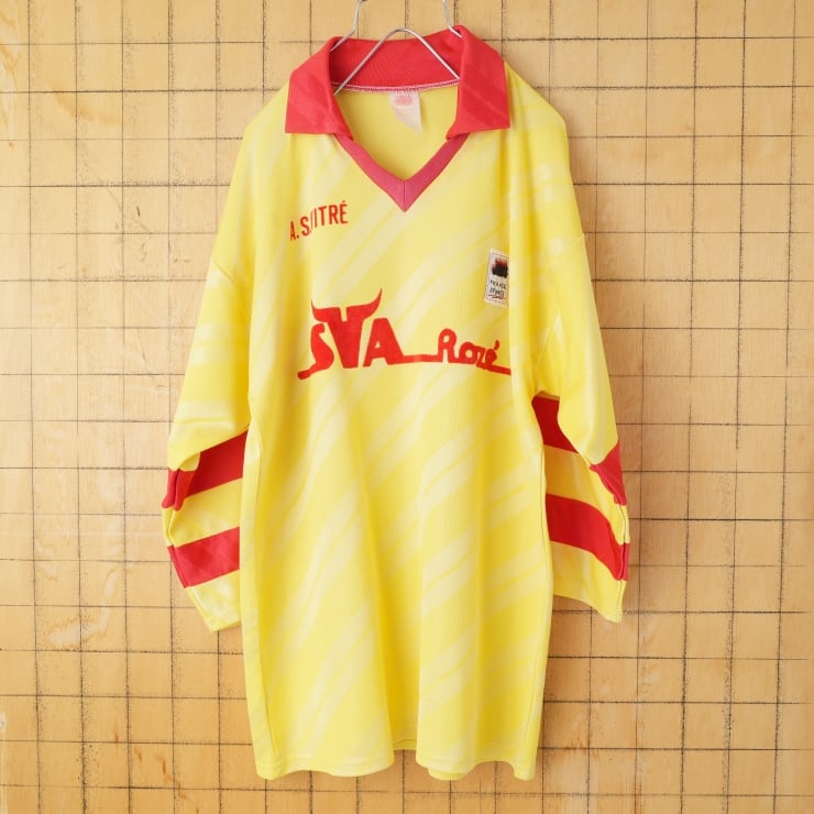 80s 90s フランス製 FRANCK SPORTS サッカーシャツ 長袖 ロンT イエロー レッド メンズM相当 ゲーム ヨーロッパ古着 011426aw8