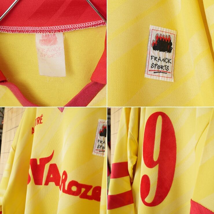 80s 90s フランス製 FRANCK SPORTS サッカーシャツ 長袖 ロンT イエロー レッド メンズM相当 ゲーム ヨーロッパ古着です。