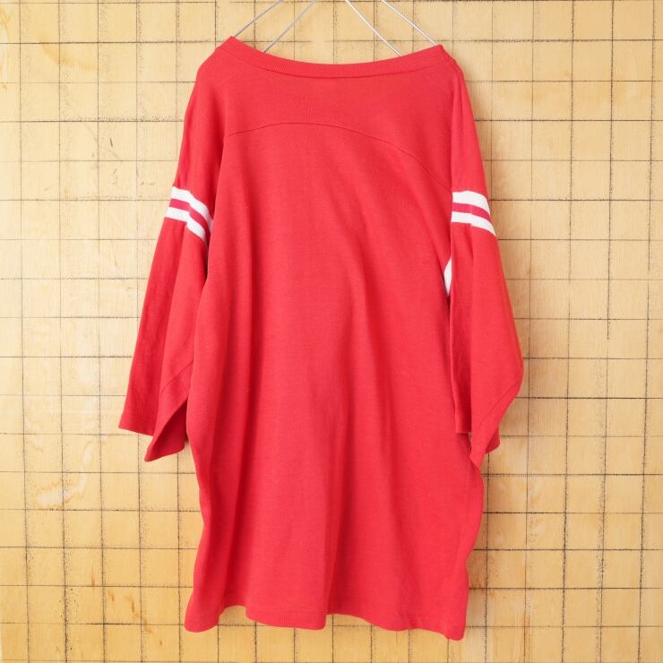 70s 80s USA GEORGIA BULLDOGS プリントフットボールTシャツ レッド メンズL相当 5部袖 アメリカ古着 011426aw9