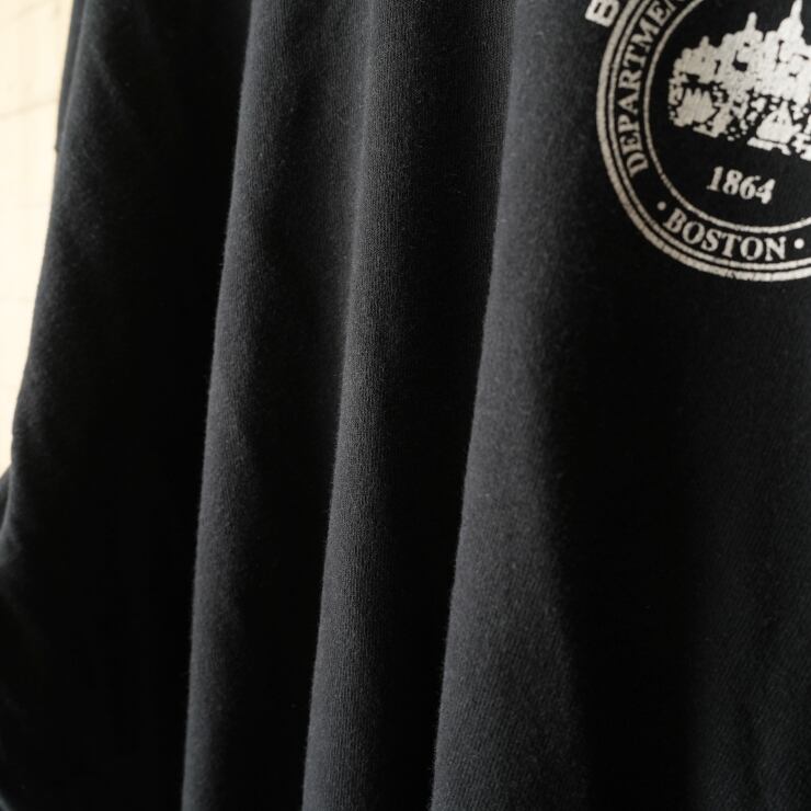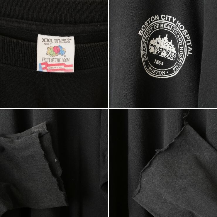 ビッグサイズ 90s USA製 FRUIT OF THE LOOM プリント長袖Tシャツ ロンT ブラック メンズXXL カットオフ アメリカ古着 031926ss23