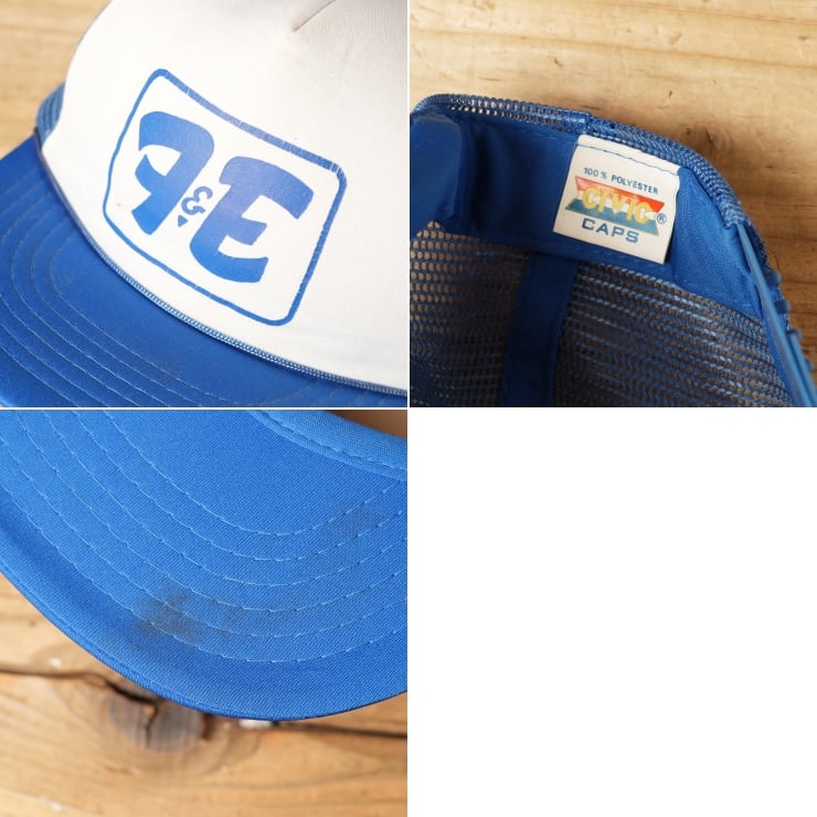 80s 90s USA F&E メッシュキャップ 帽子 ブルー フリーサイズ アメリカ古着 061125ss99
