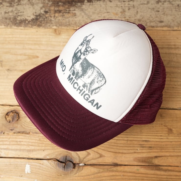 80s 90s USA MIO, MICHIGAN メッシュキャップ 帽子 ボルドー レッド フリーサイズ アメリカ古着 061125ss107