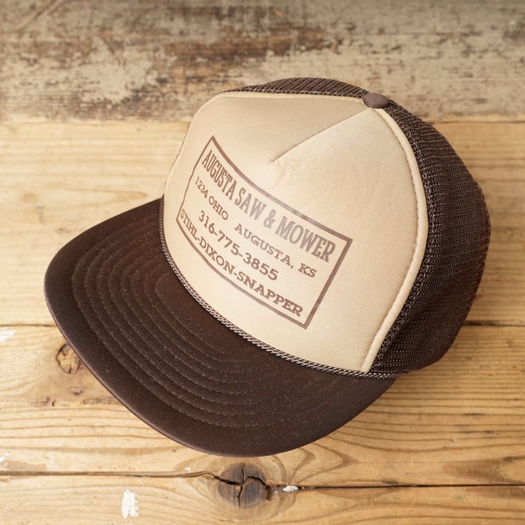 80s 90s USA AUGUSTA SAW & MOWER メッシュキャップ 帽子 ブラウン フリーサイズ アメリカ古着 061125ss109