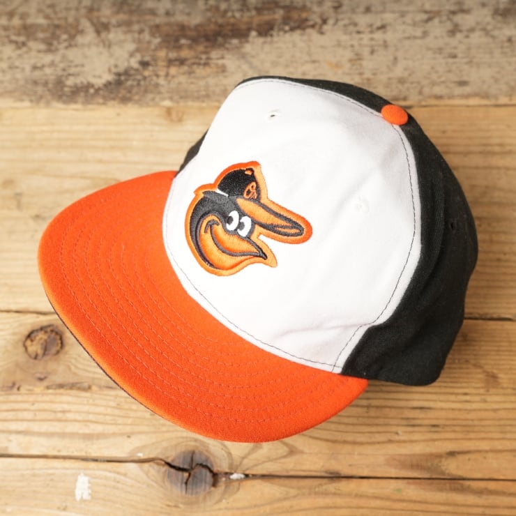 90s USA製 NEW ERA ニューエラ 59FIFTY MLBオンフィールド ボルティモア オリオールズ キャップ 帽子 オレンジ ブラック アメリカ古着 061125ss112