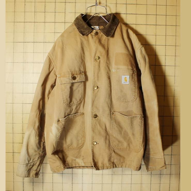 80s-90s USA製 Carhartt カーハート カバーオール ブラウン ダックジャケット 裏ブランケット メンズXL相当 古着 ダメージです。